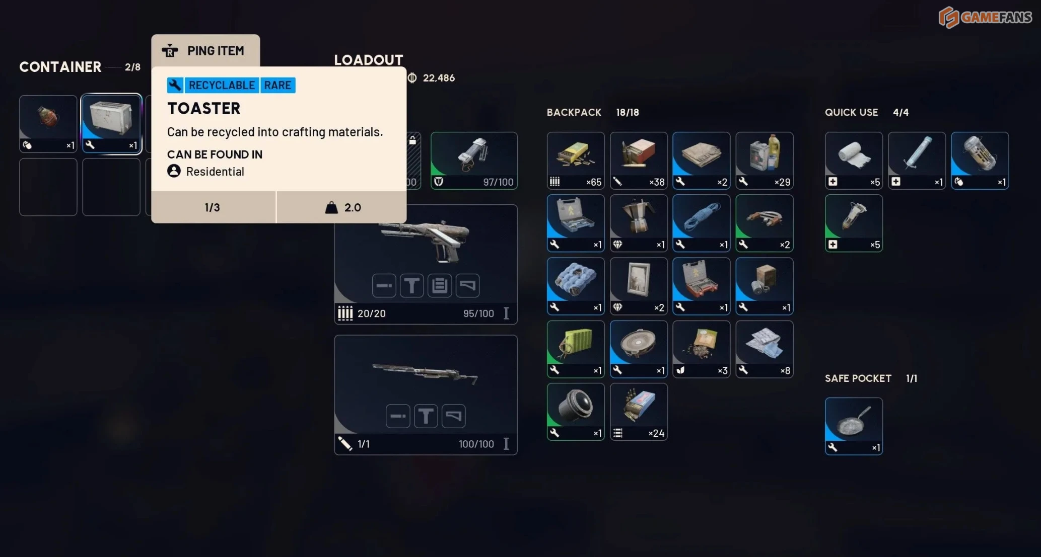 Главное правило фарма тостеров — никогда не держите их в основном инвентаре, если не уверены, что доберетесь до выхода. Используйте слот “Безопасный карман” — все, что находится в нем, сохраняется даже в случае гибели. Этот слот ограничен по вместимости, поэтому заранее освободите место, чтобы не пришлось выбирать между ресурсами.