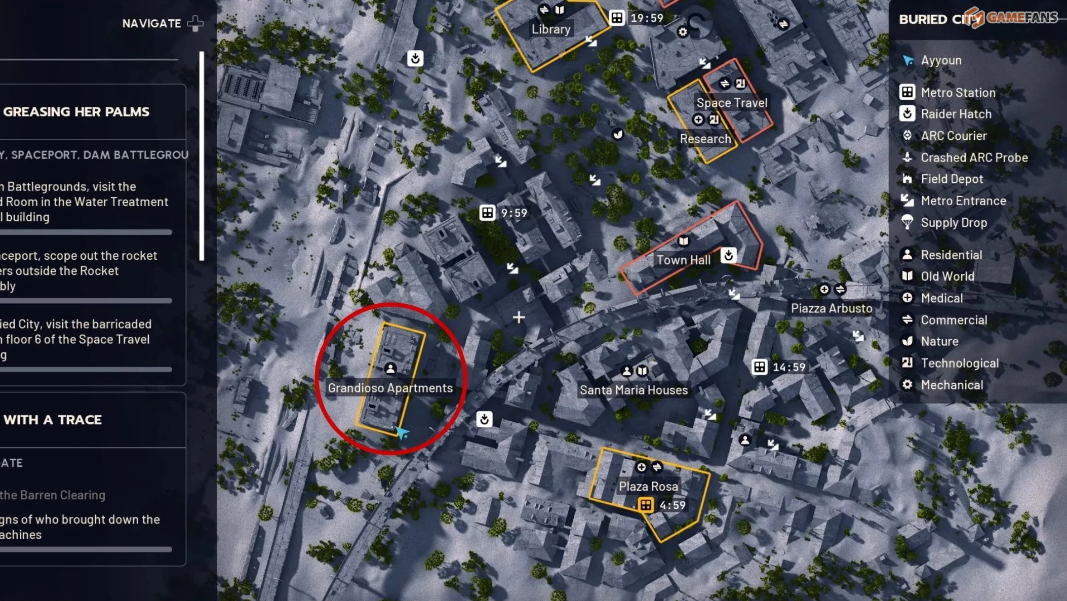 Если вы чувствуете себя уверенно и готовы к риску, отправляйтесь в Засыпанный город, в район Апартаменты Грандиозо. Это крупное многоэтажное здание на юго-западе карты, где шанс найти тостер выше, чем где-либо еще. Однако высокая концентрация рейдеров делает вылазку опасной. Здесь нередко устраивают засады у входов и лестниц, поэтому используйте обходные пути и старайтесь перемещаться по внешним балконам.