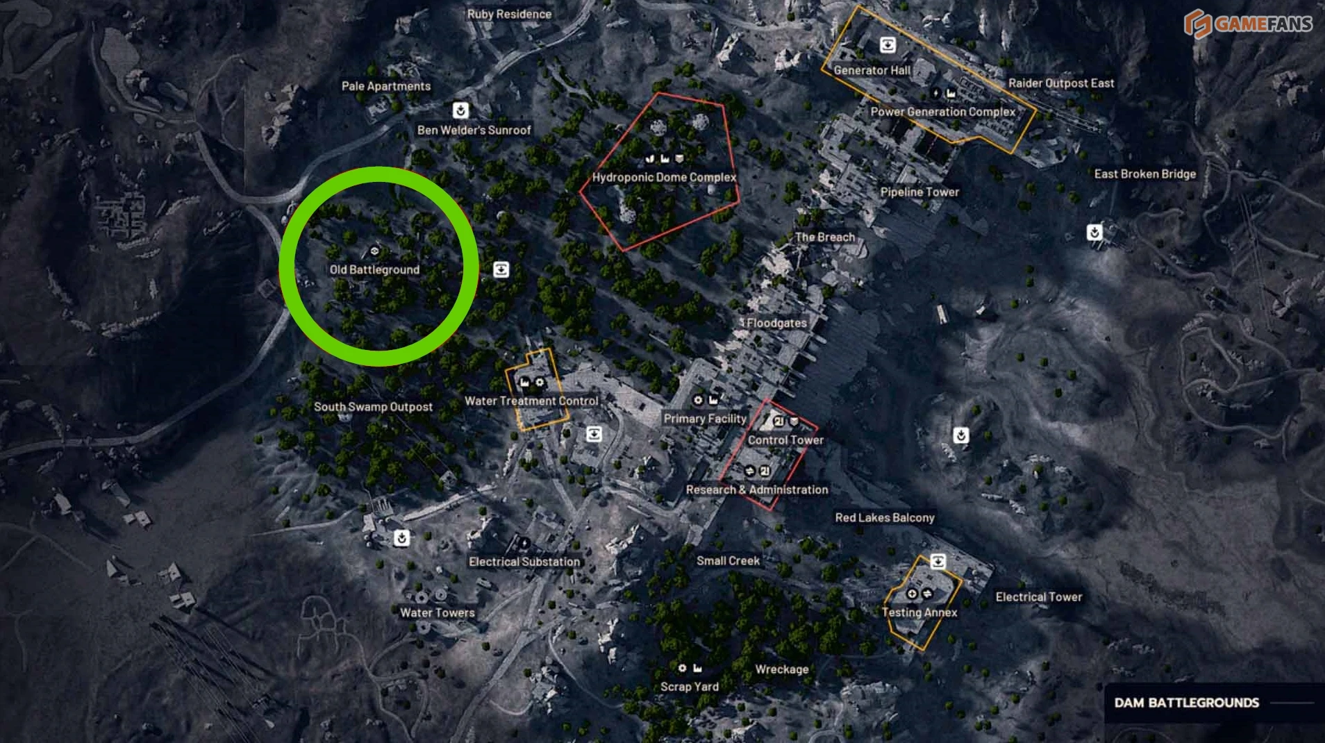 Комплекс энергогенерации — крайний северо-восточный угол. Небольшое количество контейнеров, но высокий шанс редкого лута.