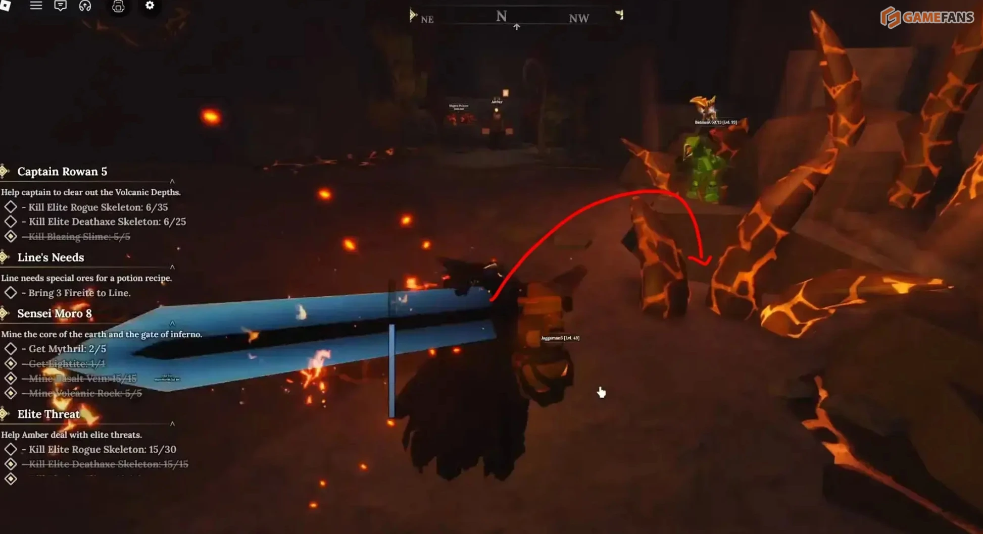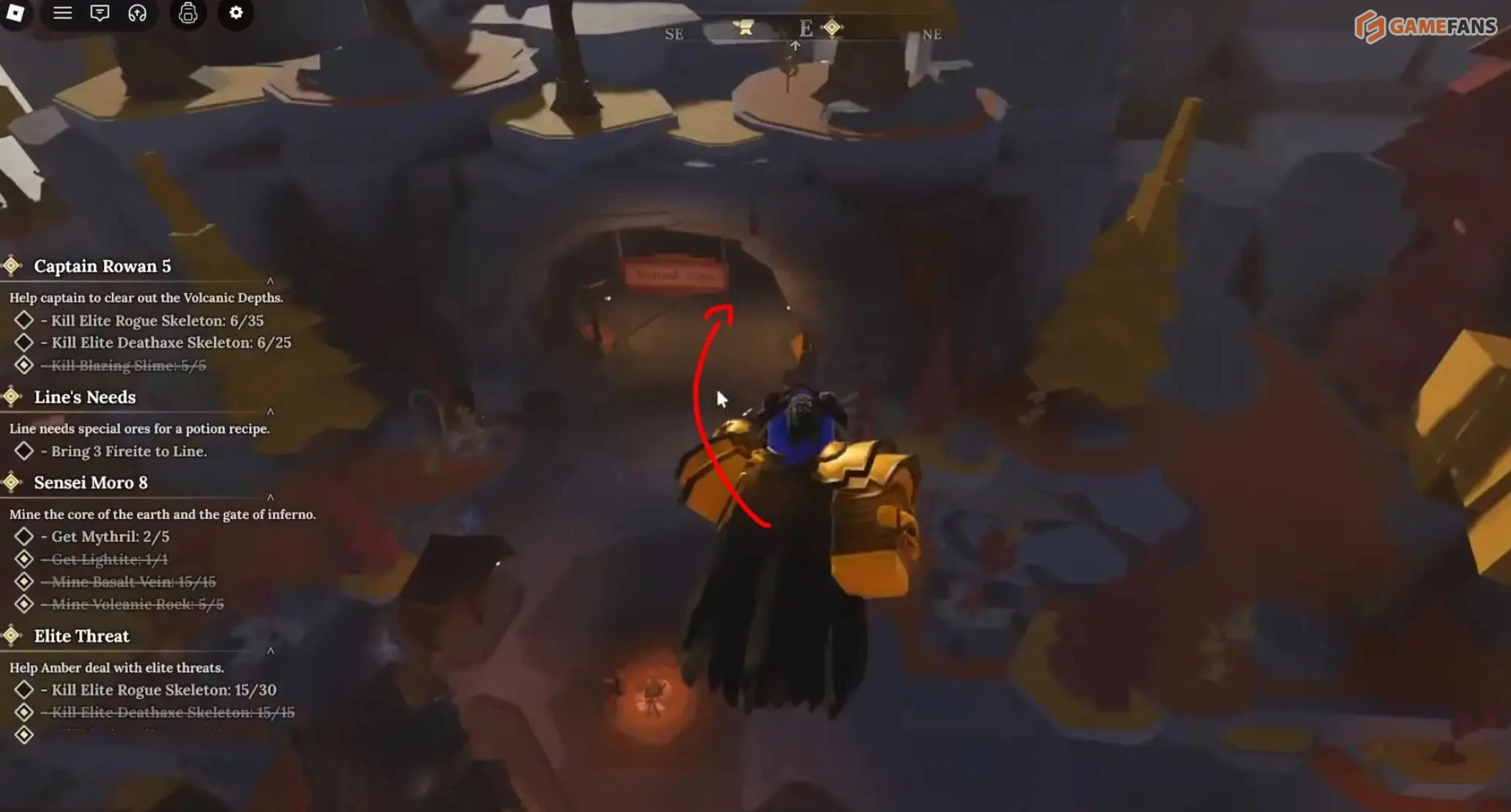 Оптимальным направлением считается Вулканические глубины. Попасть туда можно через правый проход Разрушенной пещеры, свернув в сторону области с лавовыми наростами и магмовыми включениями. За базальтовыми жилами скрывается отверстие, ведущее в нужную зону. При этом разрушать вулканические породы полностью необязательно — уже на половине их прочности становится видно, какие руды находятся внутри. Если глаз не обнаружен, проще сразу перейти к следующему месторождению.