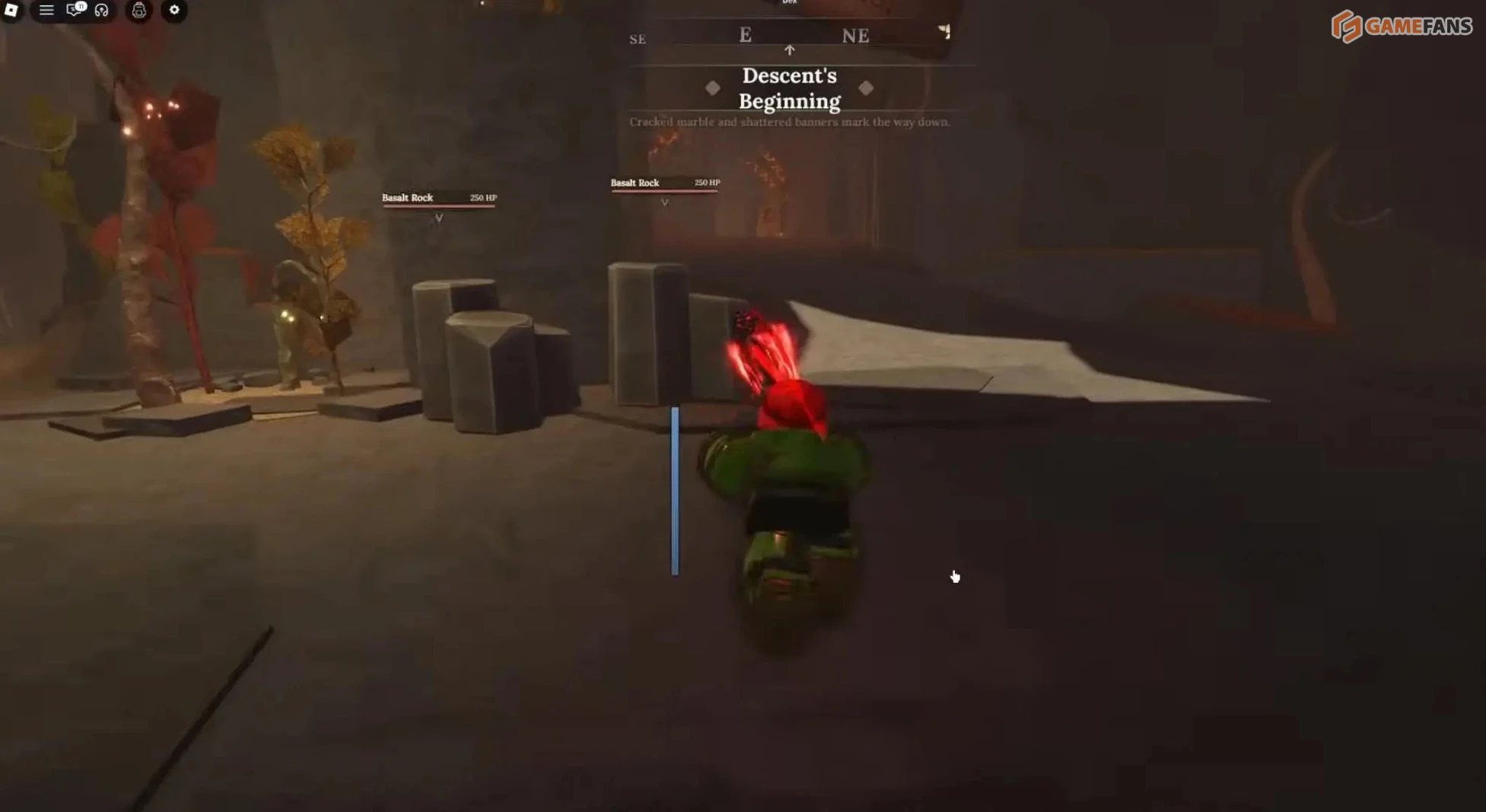 После телепортации достаточно повернуть камеру вправо, чтобы заметить гигантскую пушку. Взаимодействие с ней запускает персонажа прямо к входу в Разрушенную пещеру — ключевое место для фарма руды глаз. Внутри этой локации встречаются несколько типов пород, из которых теоретически может выпасть нужный материал. К ним относятся базальтовые породы и ядра, доступные уже в начальной части пещеры, а также базальтовые жилы и вулканические камни, спрятанные глубже и требующие более серьезной подготовки.