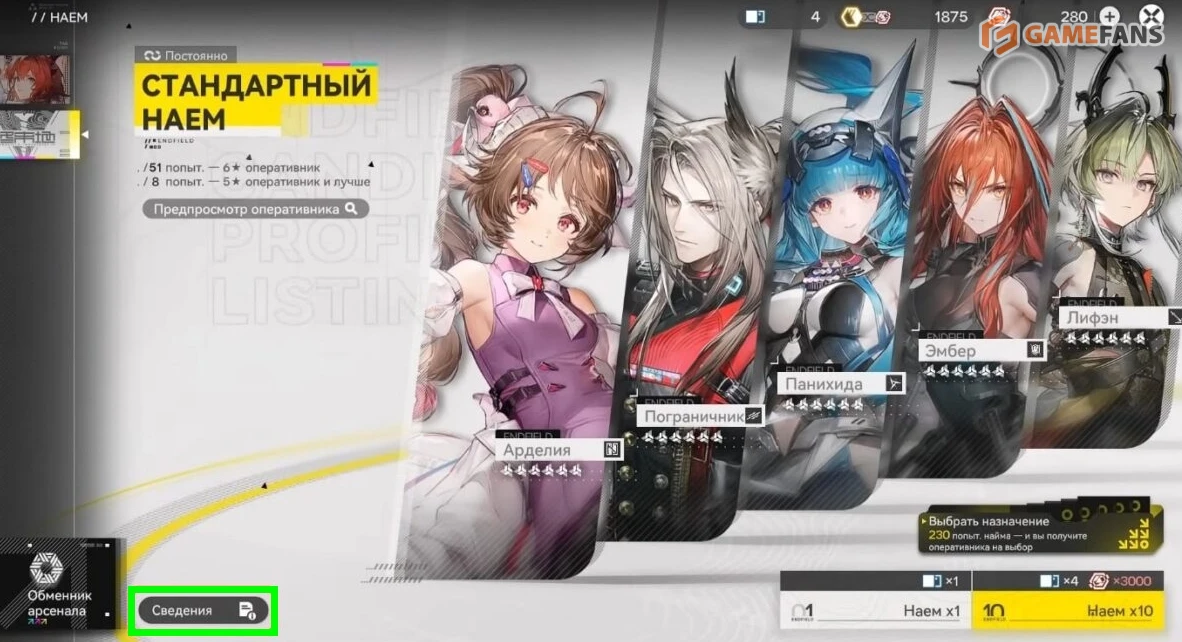 Оружие для персонажей приобретается через Обменник арсенала. Здесь каждый запрос поставки выдает сразу 10 единиц экипировки, среди которых гарантирован минимум один предмет 5⭐. Легендарное оружие появляется регулярно, но сигнатурные варианты ивентовых персонажей строго привязаны к своим лимитам.