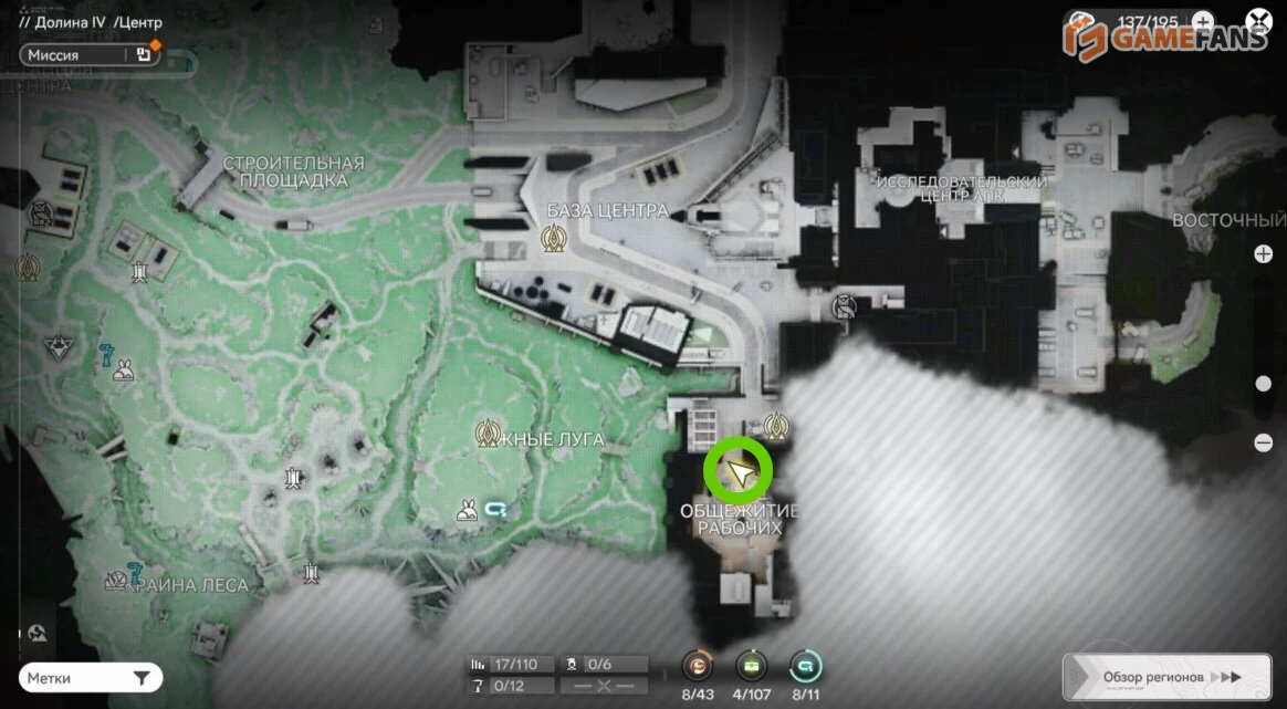 В Центре можно найти сразу три точки сбора. Первая расположена неподалеку от Старой станции водоочистки: воспользуйтесь ближайшей точкой телепротокола и поднимитесь на возвышенность к юго-востоку от Аллювия энергии. Вторая поляна находится совсем рядом — ориентиром послужит Протокольный разлом. Третья точка откроется позже, после продвижения по сюжету и получения доступа к Скалистому перевалу: гриб растет прямо на вершине.