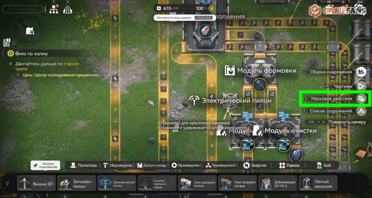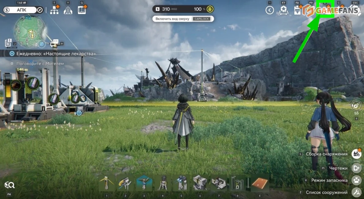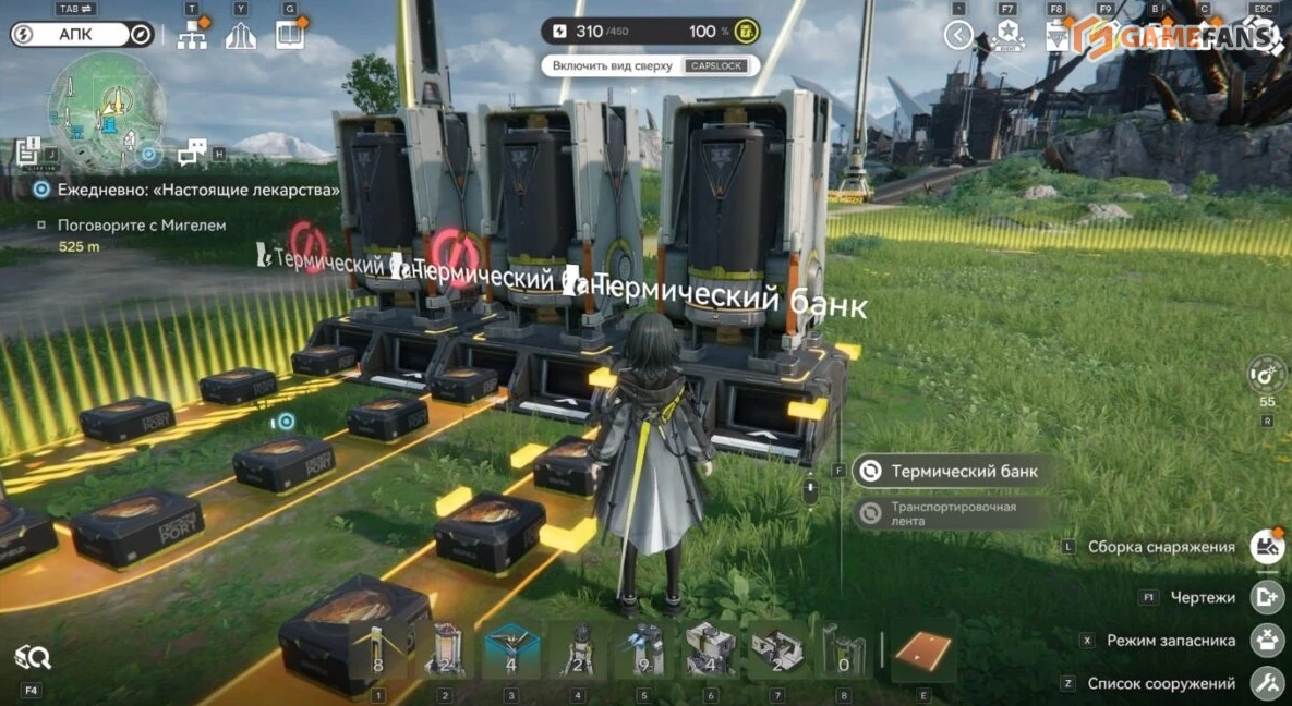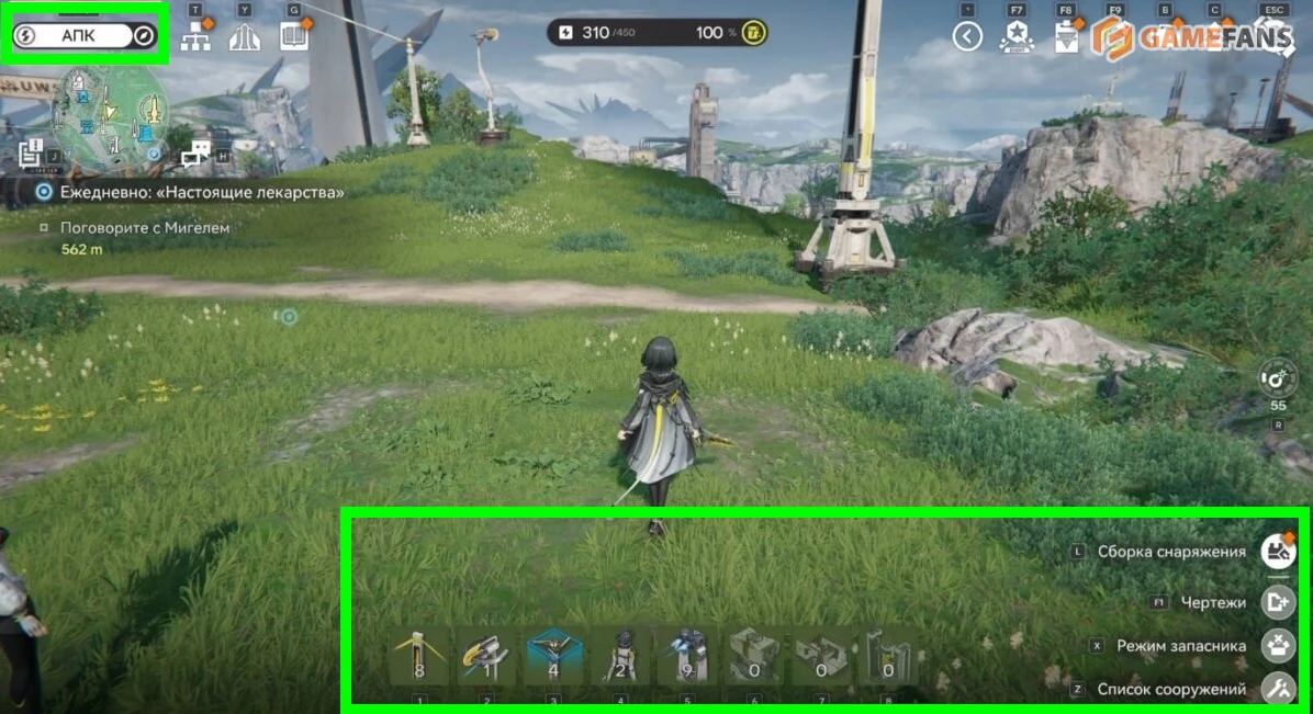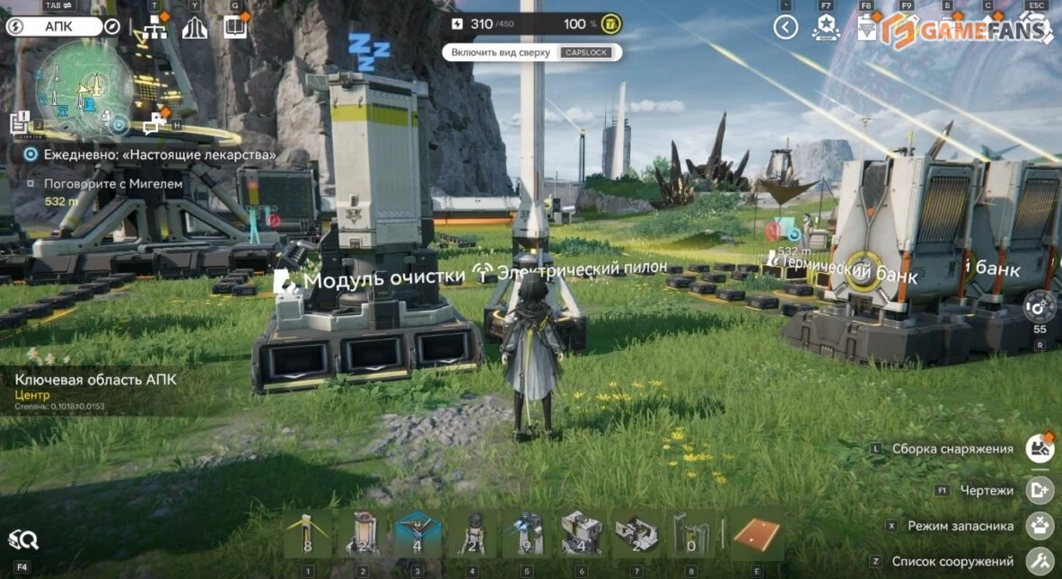 Фабрики и энергетическая инфраструктура не ограничиваются только центральной зоной. В задачи Эндминистратора входит восстановление региона целиком, поэтому строить придется и за пределами базы. Для этого используется режим АПК, который активируется отдельной кнопкой над мини-картой. В нем открывается панель быстрого доступа ко всем доступным сооружениям и инструментам, включая прокладку логистики и электросетей.