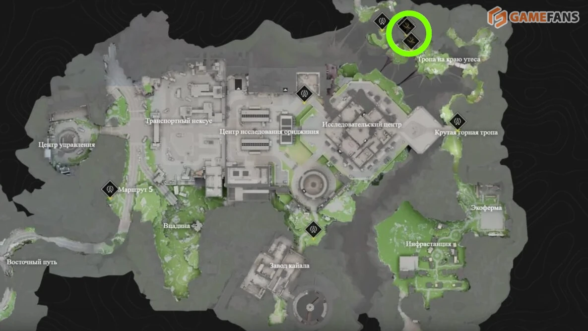 Небольшая точка сбора находится на переходе в Первое месторождение, рядом с тропой у края утеса. Это удобное место, если вы проходите сюжет и не хотите отклоняться от маршрута.