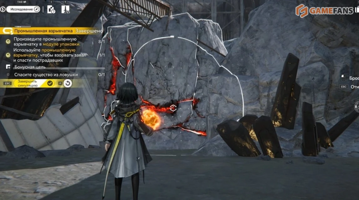После разрушения завала по сюжету не забудьте спасти существо за стеной — это обязательный шаг продвижения дальше. Для выполнения основной и бонусной целей достаточно двух гранат.