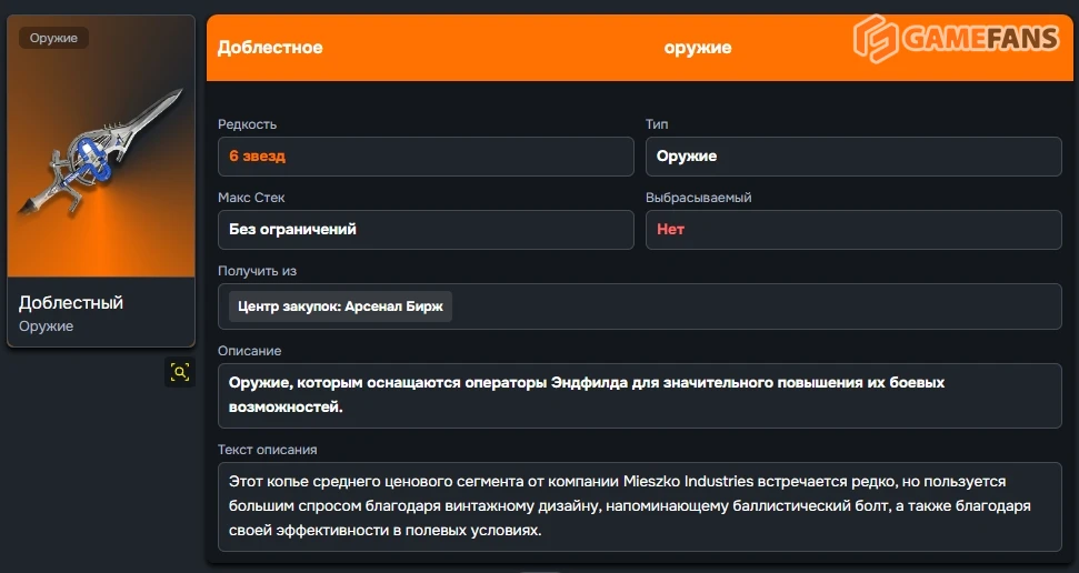 | Доблесть (6⭐) Ловкость +20–156 Физ. УРН +5.6–43.3% |
