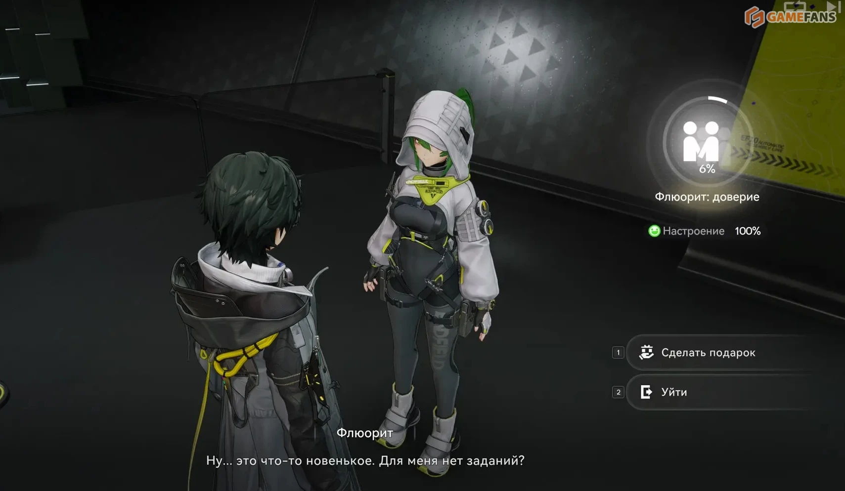 По мере роста Доверия меняется и взаимодействие с персонажами на борту "Дицзяна". Оперативники начинают чаще общаться с Эндминистратором, появляются новые реплики и уникальные диалоги. Иногда герои могут дарить ответные подарки — чаще всего это материалы прокачки или полезные расходники.
