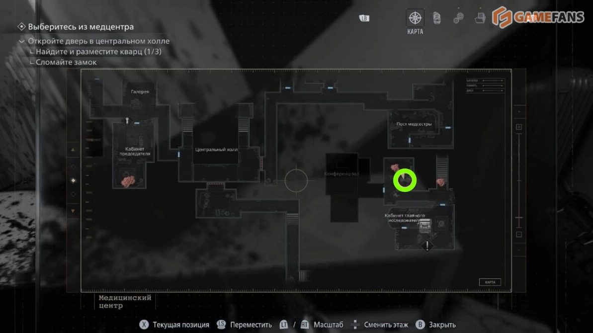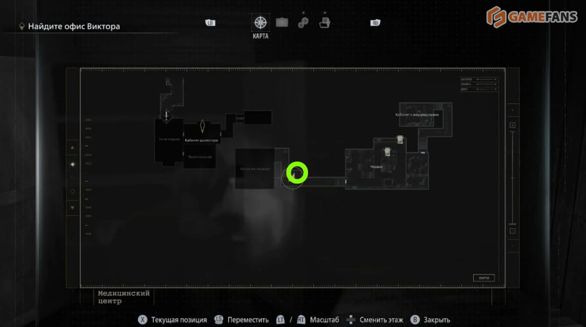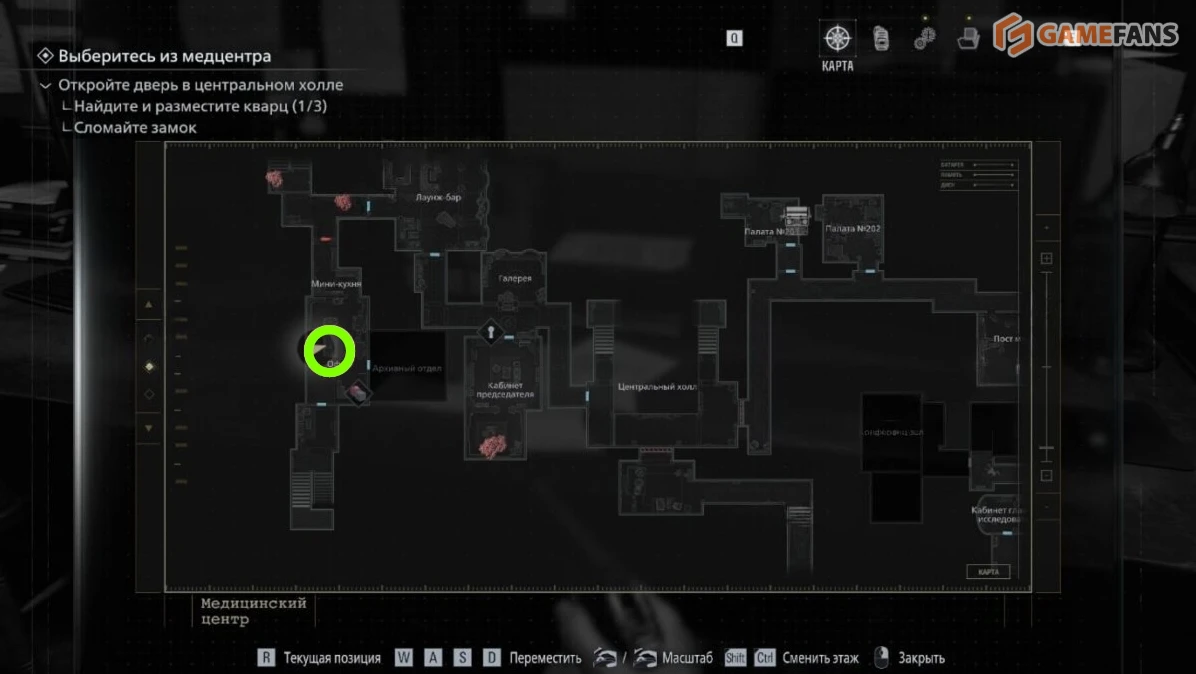 Находится в восточном крыле первого этажа — в комнате с «трупом без органов».