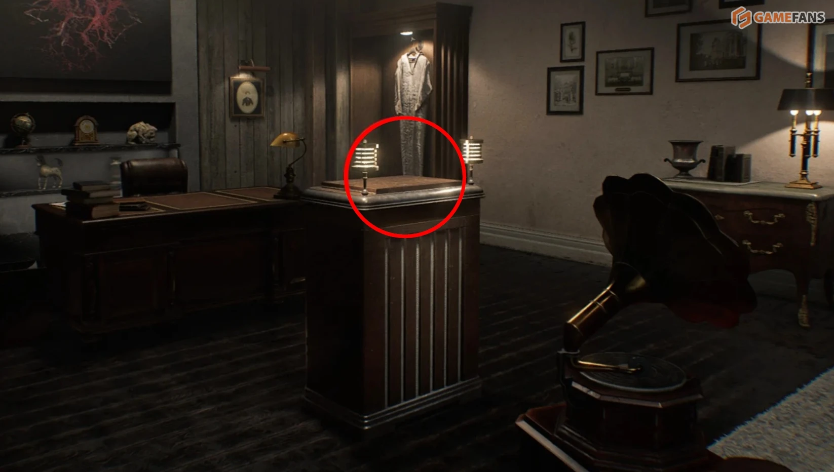 На этом же столе находятся песочные часы. Осмотрите их и открутите винты с обеих сторон, чтобы забрать предмет.