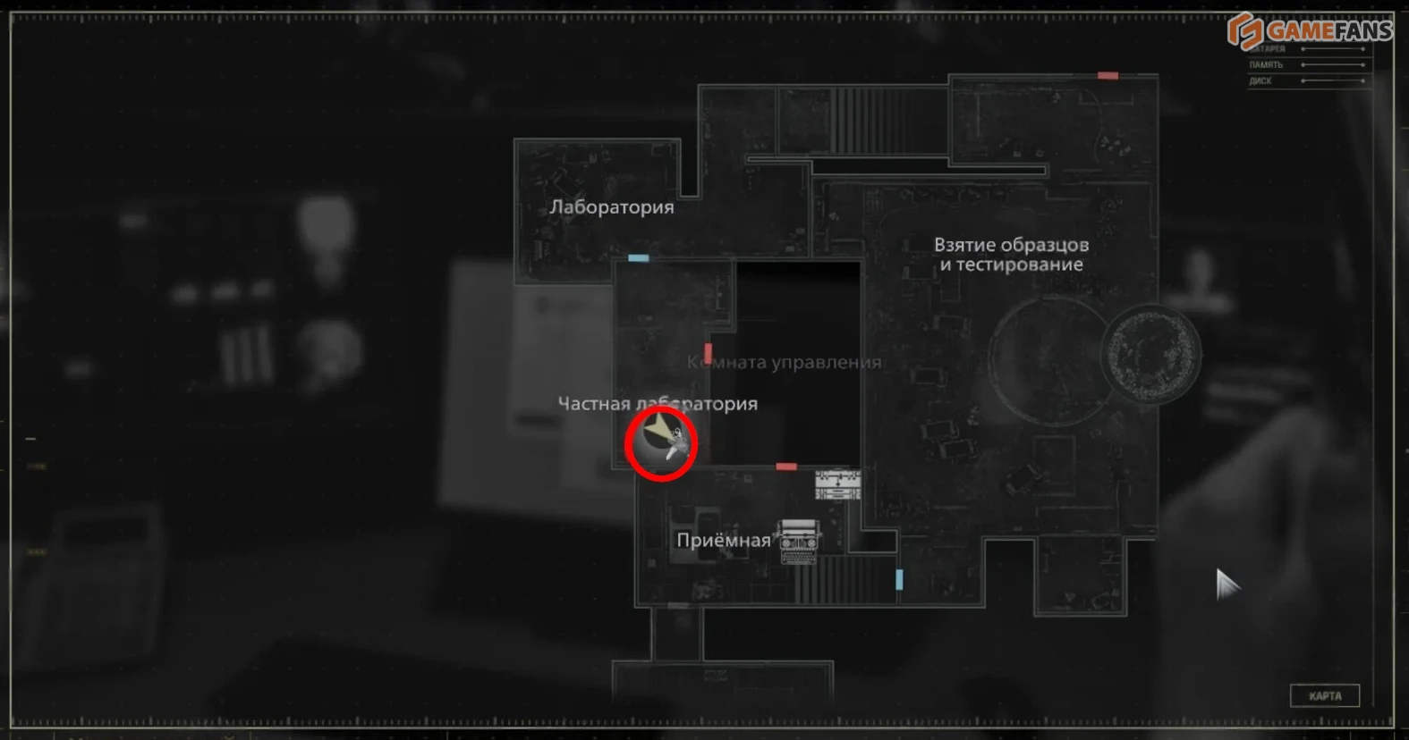 Пройдите через помещения забора и тестирования образцов. На кушетке у выхода находится запись о подопытной №170. Рядом с аварийным выходом висит карта научного комплекса. От нее поднимитесь по лестнице, пройдите через лабораторию и войдите в следующую комнату. На столе лежит отчет по анализу крови Грейс Эшкрофт. В юго-западном углу частной лаборатории можно найти фигурку мистера Енота. Ключ от вертолета находится здесь же — на столе с несколькими мониторами.