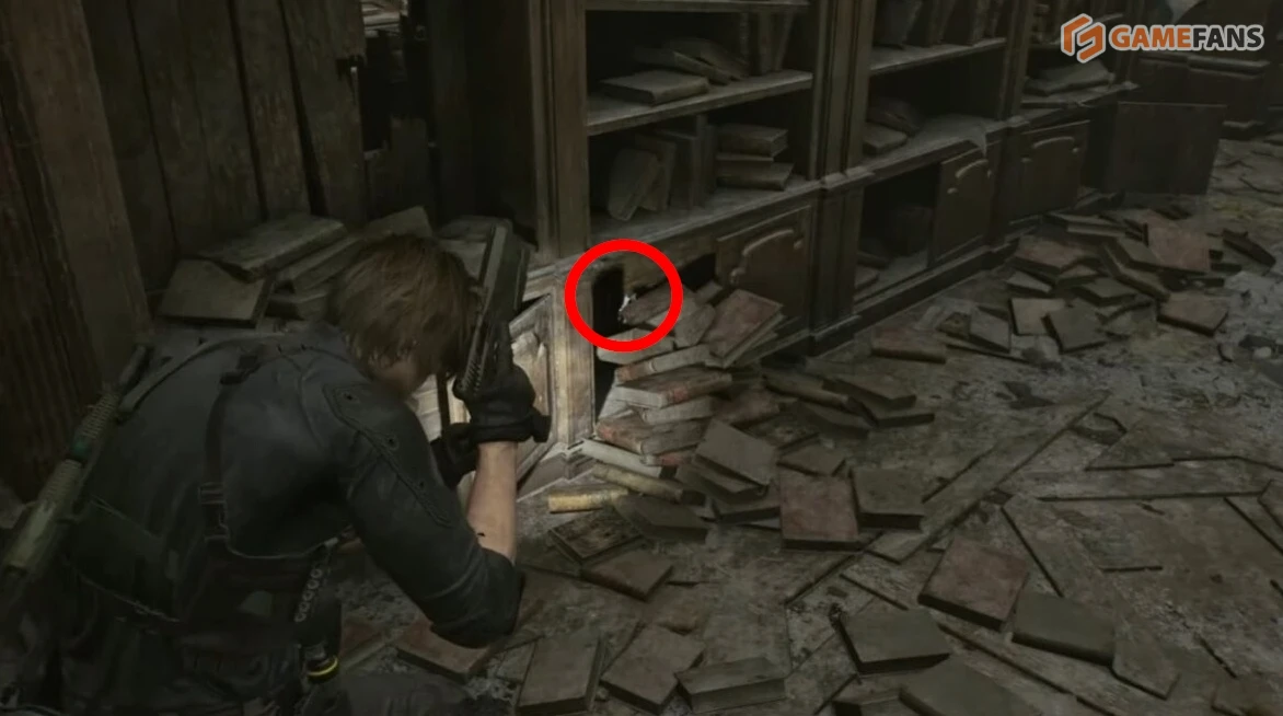 В библиотеке ориентируйтесь на звук. Осмотрите книжный стеллаж: нижняя полка закрыта стопкой книг. Ударьте по ней или выстрелите, чтобы открыть доступ ко второй статуэтке.