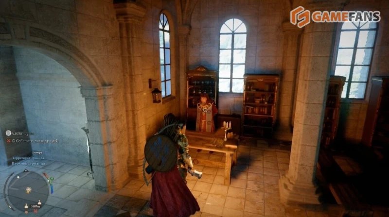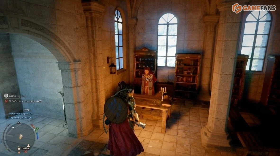 Внутри нужно найти служителя по имени Альфред и поговорить с ним. Он предлагает услугу покупки индульгенции, которая полностью снимает штраф и избавляет персонажа от негативного статуса. После оплаты нужной суммы розыск исчезает, а герой снова может свободно перемещаться и взаимодействовать с окружающим миром.