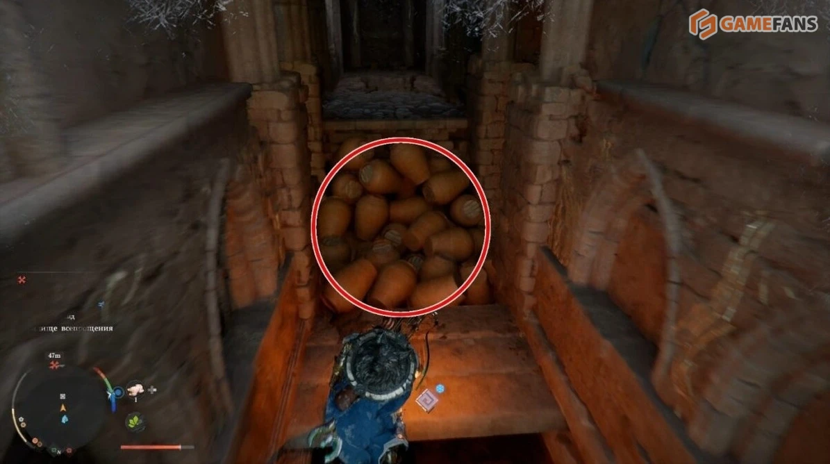 Чтобы добраться до сундука, расположенного за решеткой в коридоре с глиняными сосудами, придется решить дополнительную головоломку.