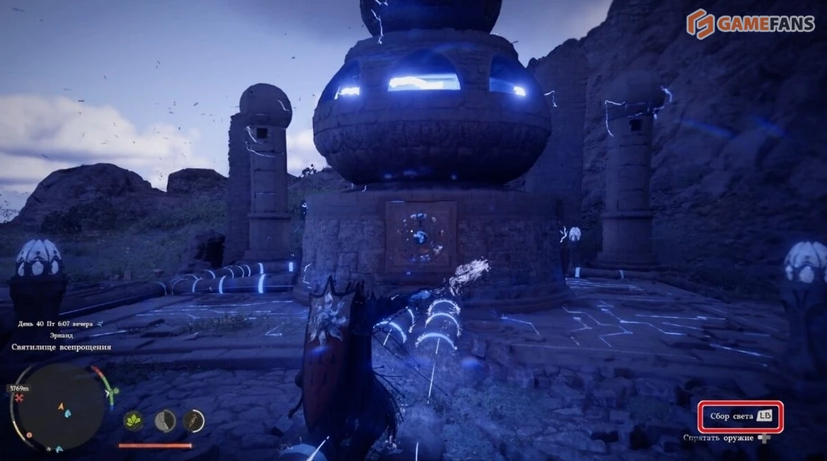 Как и в других руинах с реактором, здесь можно добыть особое ядро, используемое для крафта в мастерской Килнден. Для этого потребуется пройти мини-игру на панели главного механизма. Подойдите к устройству, активируйте отражение света, затем удерживайте кнопку «Сбор света» и направьте луч в круглую сердцевину.