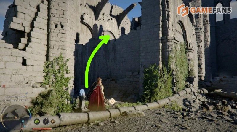 После завершения испытания автоматически начнется разговор с Эловен. Затем можно продолжить исследование территории. Вход в сокровищницу расположен на втором уровне храма — снова поднимитесь по той же стене.