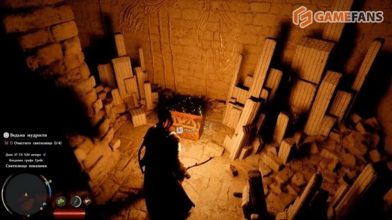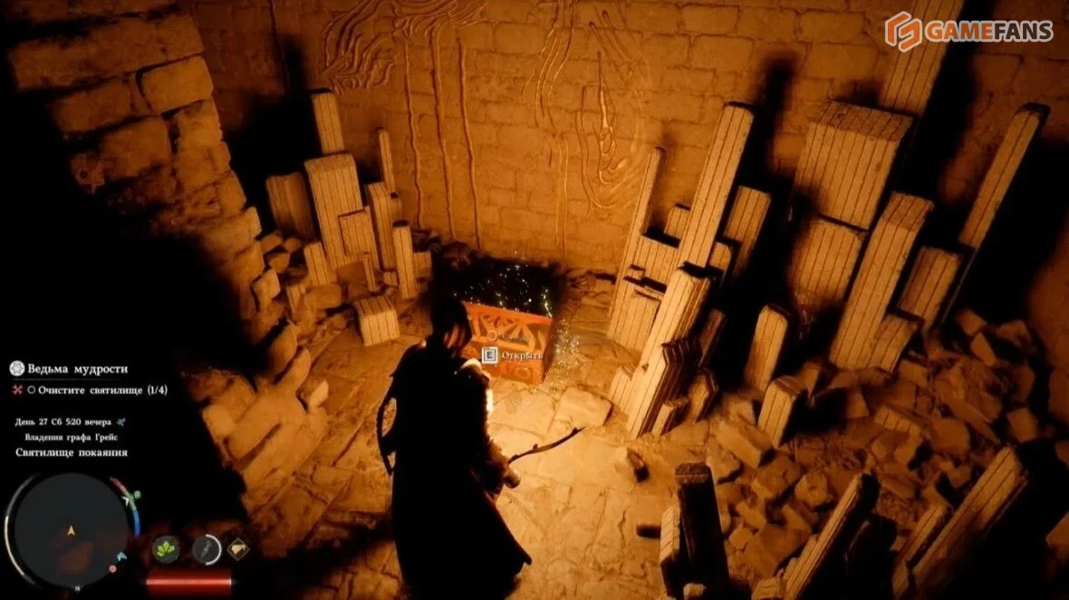 За выполнение задания фракции «Ведьма мудрости: Святилище покаяния» вы получите знание «Чертеж I: Сумка Желтоклюва». Кроме того, при тщательном осмотре локации можно найти случайный предмет экипировки из набора «Черное Крыло», спрятанный в сокровищнице.