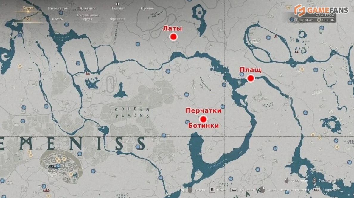 | Латные туфли Темного снайпера | Заброшенная сторожевая башня | В потайном помещении за стеной в подвале. Проход открывается природным ударом ладонью. |
