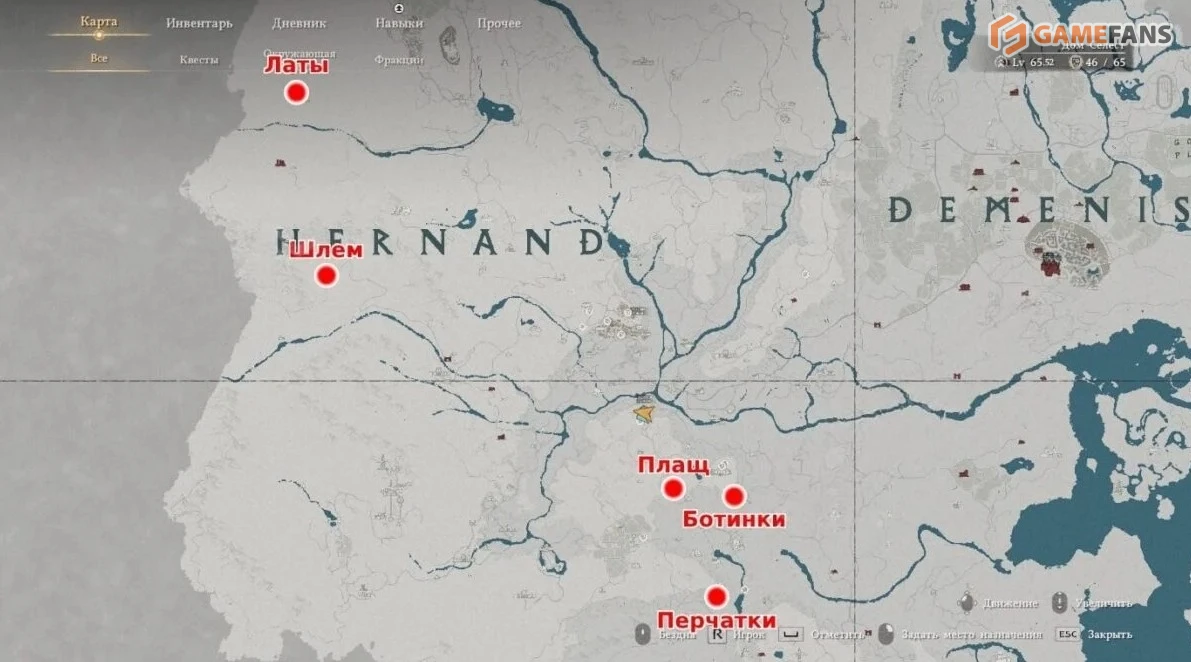| Кожаные перчатки Хелфрина | Север города Деменисс | Под крышей сторожевой башни есть отличающийся участок стены. Зацепитесь за него и бейте ударом пальмары. |