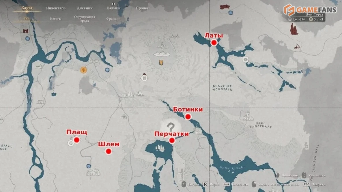 | Шлем морозного проклятия | Говорящая скала | В секретной комнате за зарослями. |
