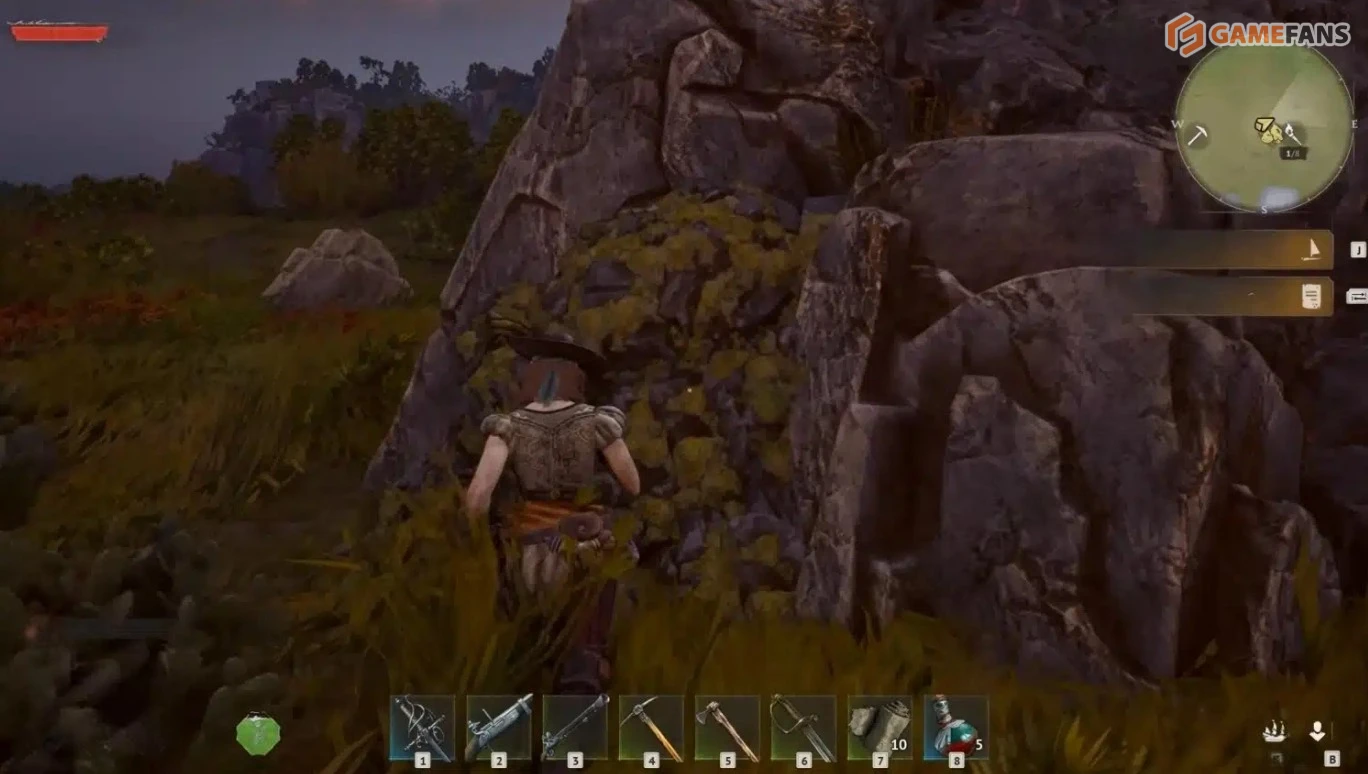 Залежи серы становятся доступны в предгорьях — это более поздний биом, куда игрок попадет по мере развития сюжета. Здесь также можно добывать железную руду и создавать улучшенную железную кирку.