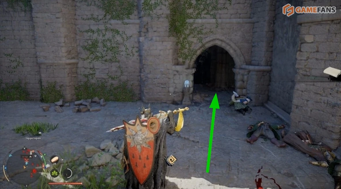 Сундук с оружием спрятан в помещении за закрытой решеткой. Чтобы открыть проход, нужно найти вход с южной стороны руин, который охраняют несколько культистов.