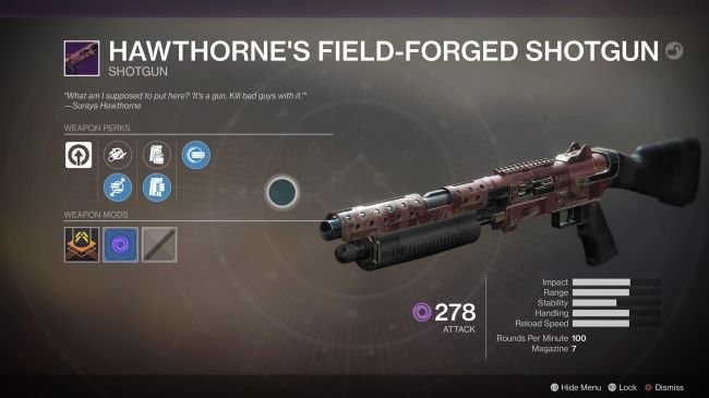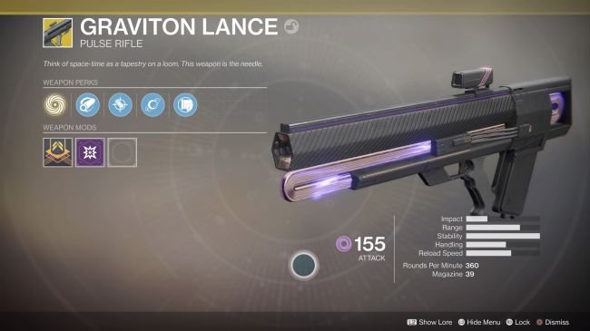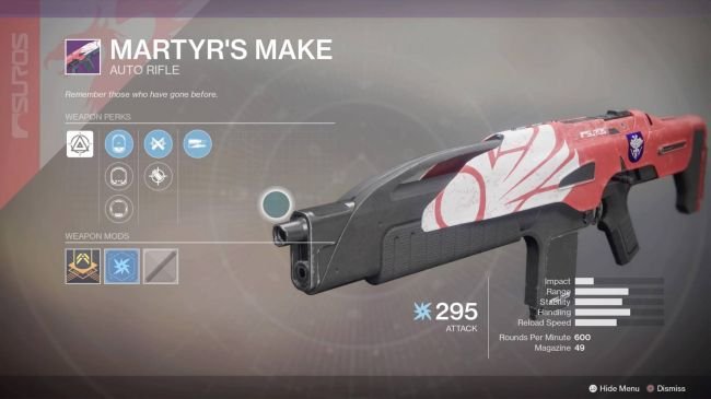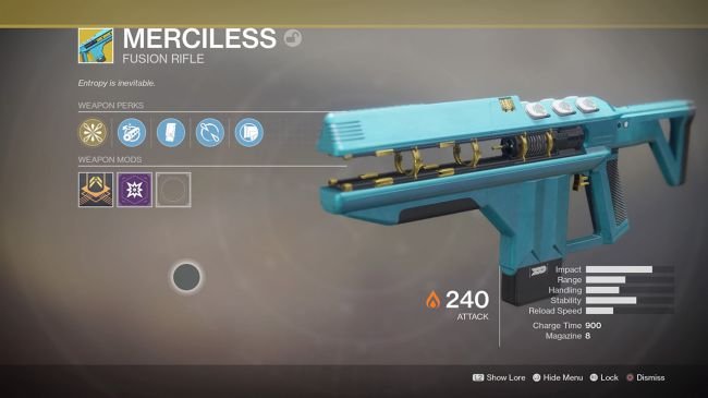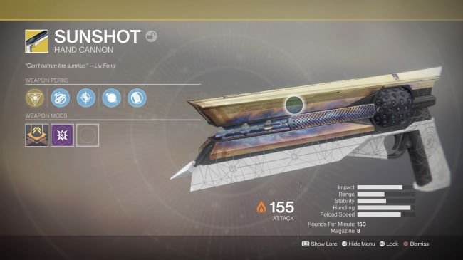 Как получить: Награда за выполнение сюжетной миссии. При выполнении первой сюжетной миссии на Ио вы получите в качестве награды одно из трех экзотических оружий. Впрочем, все три могут быть разблокированы в будущем с помощью энграмм, торговцев или случайных выпадений с боссов.