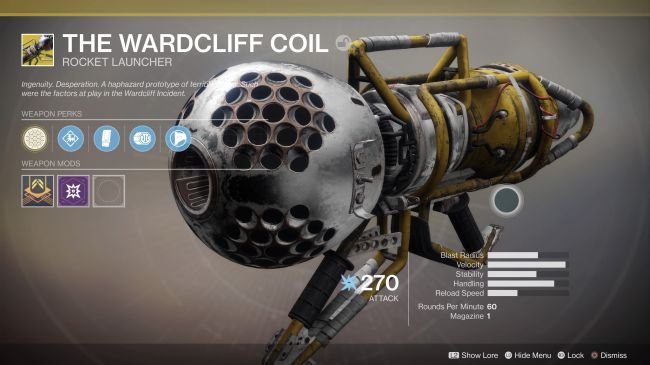 Почему нам нравится это оружие: Итак, возможно эта экзотическая ракетная установка и выглядит немного необычно, но на деле — это отличное средство по разгону толпы в PvE. Помимо этого, Катушка ВСЕГДА обеспечивает парочку легких фрагов в «Горниле». Поскольку она стреляет «салютом» (на самом деле — обильно разбрасывает снаряды на приличный радиус), кого-нибудь или что-нибудь она обязательно заденет своим залпом из самонаводящихся ракет. Она отлично выглядит, отлично звучит, а благодаря автоматической перезарядке при поднятии боеприпасов для тяжелого оружия, вы можете использовать Уордклиффскую катушку в экстренной ситуации, просто переключившись на нее и выстрелив, не тратя время на перезарядку и тщательное прицеливание. В режиме PvP вы получаете только один выстрел при поднятии соответствующих боеприпасов, но иногда одного залпа бывает достаточно, чтобы «положить» целую команду.
