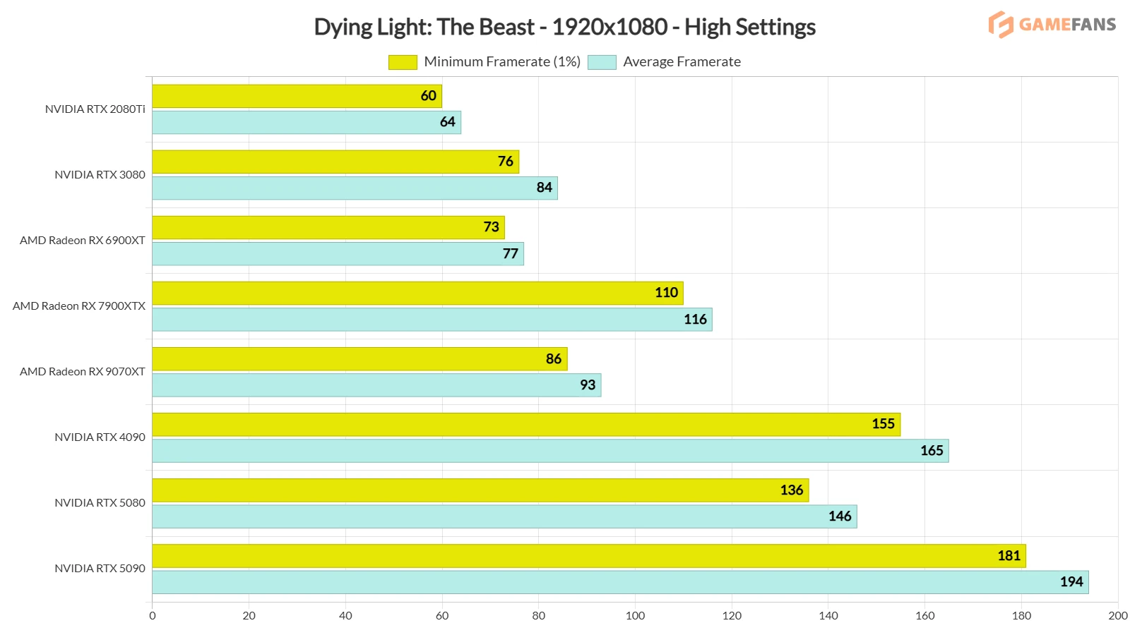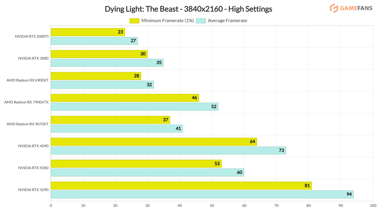 Согласно им, у проекта все отлично с оптимизацией. Студия Techland смогла адаптировать свое детище под самое разное железо, благодаря чему даже не на самых мощных ПК Dying Light: The Beast может выдавать стабильные 60 FPS. В 4К частота кадров опускалась ниже 30 FPS только на RX 6900XT и RTX 2080Ti, при этом, тестеры не запускали апскейлеры.