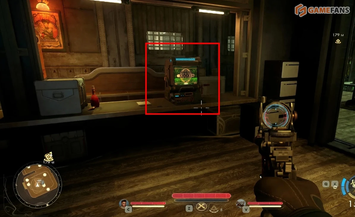 После разговора Эммелин попросит вас стереть записи о поставке. Для этого отправляйтесь на запад от ратуши к складу с военной техникой. Внутри найдите ключ-карту терминала пополнения запасов — она лежит на ящике у входа. Чтобы воспользоваться ею, придется отвлечь старшего специалиста Кардосу.