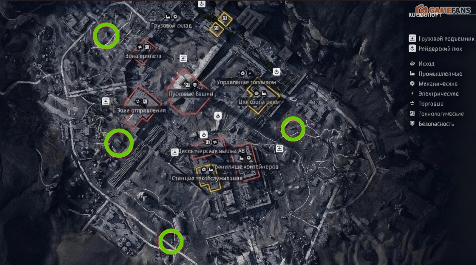 Третья и последняя зона — космопорт, где четыре вагончика стоят по краям зоны. Это самые безопасные локации, особенно если действовать быстро и избегать внимания противников.
