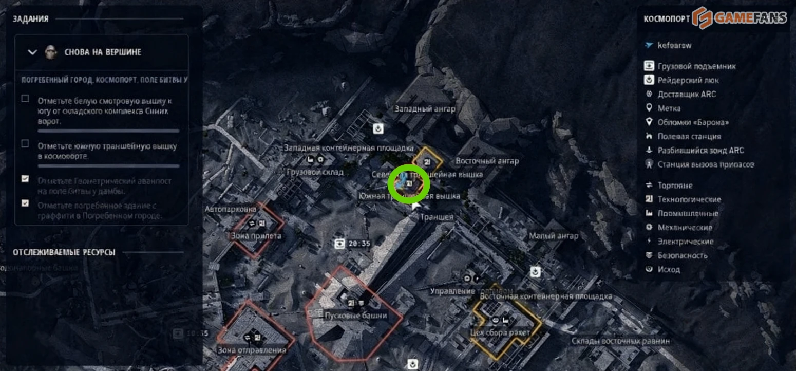 Теперь направляйтесь в Космопорт, на северную часть карты, где расположены траншейные башни. Вас интересует южная из них. Обычно здесь можно найти редкие материалы, но также часто встречаются противники, включая элитного дрона «Бастион».
