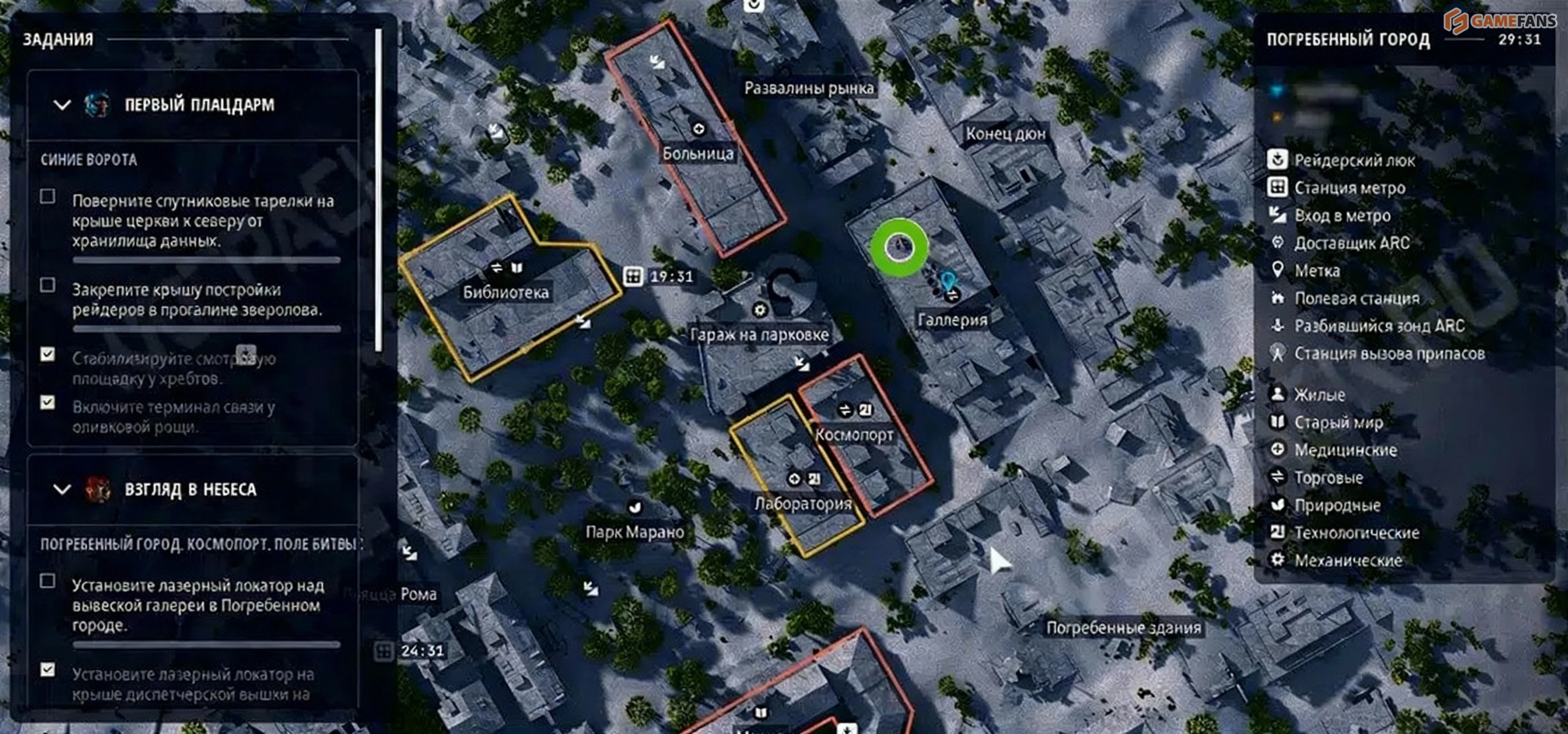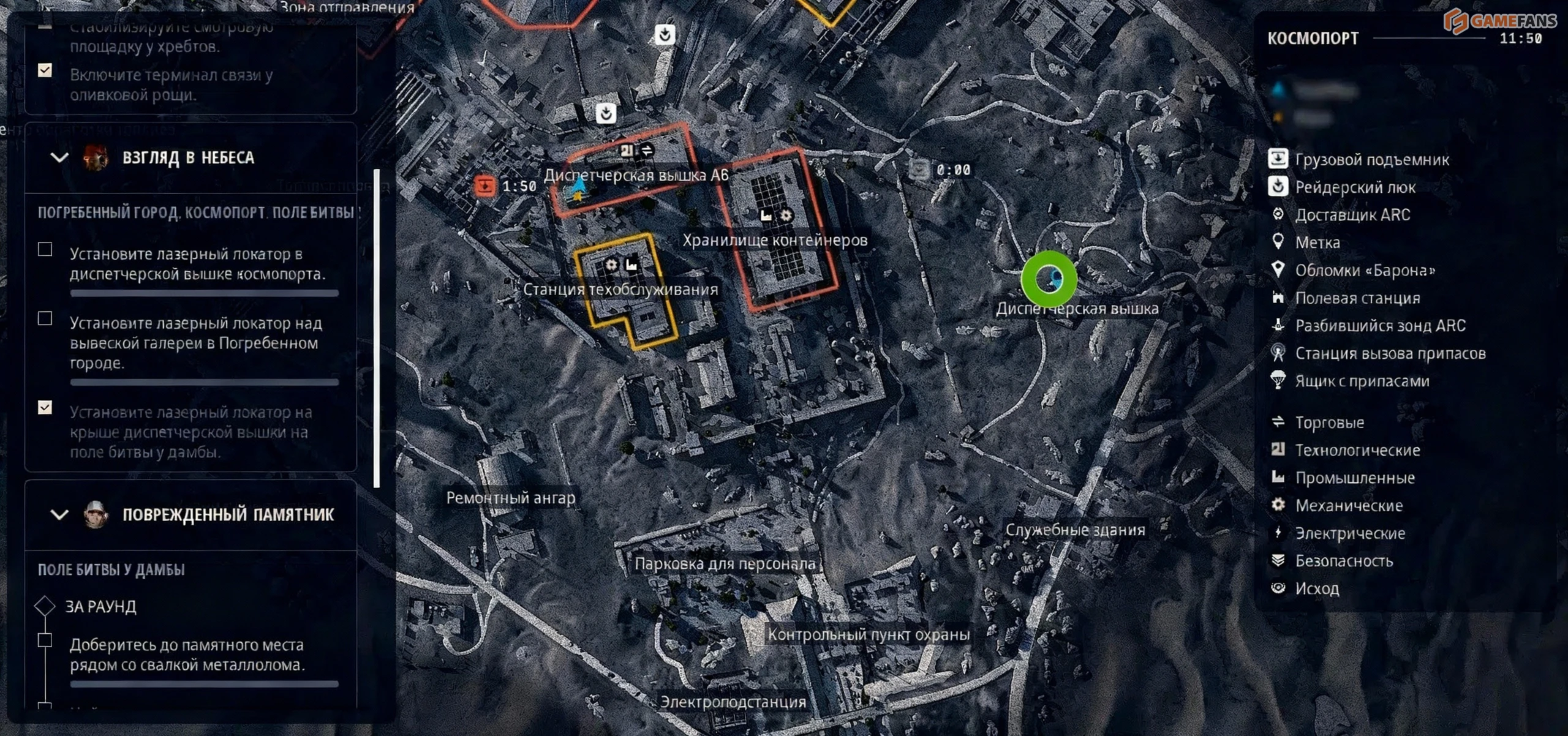 Последняя точка — самая безопасная. Диспетчерская вышка Космопорта стоит чуть в стороне от основных боевых зон, и большинство рейдеров сюда не заглядывают. Не перепутайте ее с вышкой А6: нужная находится восточнее и выделяется ржавыми металлическими конструкциями.
