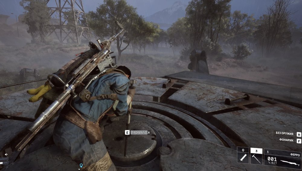 Чуть восточнее грузовиков с компасом вы увидите пару больших металлических цистерн. Возле одной из них стоит небольшой контейнер. При взаимодействии игра почему-то показывает надпись «Найти скотч» — это просто ошибка локализации, не обращайте внимания. Внутри лежит нужная видеокассета времен Первой волны.