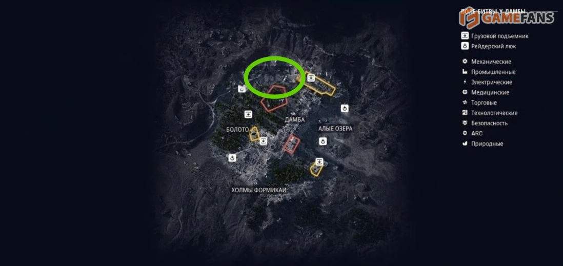 Если выбираете эвакуацию, то ближайший подъемник расположен совсем рядом — в генераторном холле центрального энергокомплекса. Это удобная точка, особенно если вы не хотите рисковать, но учтите важный момент: северный комплекс относится к желтой зоне, где шанс встретить враждебных игроков заметно выше. К тому же, над этой областью часто кружит Ракетчик, усложняя подъем.