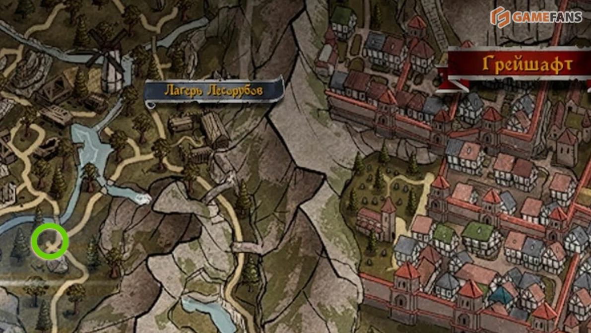 Следующий шаг — опрос местных торговцев. Поставщиком самогона оказывается Радим, знакомый по заданию "Плохой район". Чтобы его найти, выйдите из лагеря дровосеков по юго-западной тропе и направляйтесь к переправе, открытой в миссии "Сломанный мост". Оттуда двигайтесь прямо, пока не заметите телегу и торговца рядом с ней.