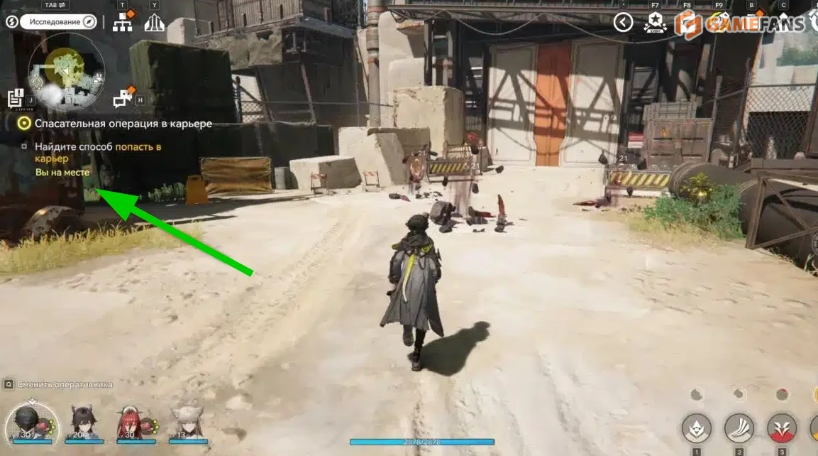 Согласно описанию задачи в журнале квестов, вам необходимо проследовать по маркерам задания и проникнуть в разрушенную зону к юго-востоку от центрального района, чтобы провести разведку и оказать помощь работникам карьера.
