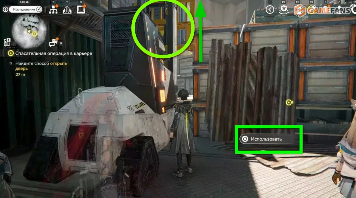 Чтобы активировать механизм ворот, потребуется использовать окружение. Справа от двери можно пройти через контейнер или забраться наверх, используя ящики.