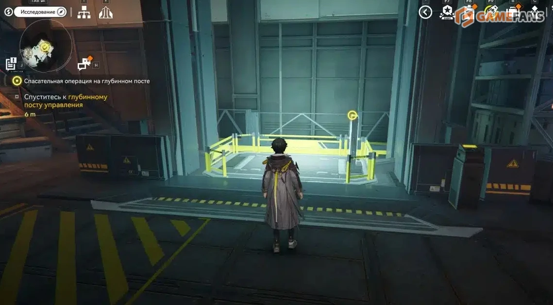 Добравшись до входа в глубинный пост управления, осмотрите доступную территорию. Объекты, с которыми можно взаимодействовать, отмечены желтыми индикаторами — не пропускайте их, так как они дают дополнительную информацию о произошедшем инциденте.