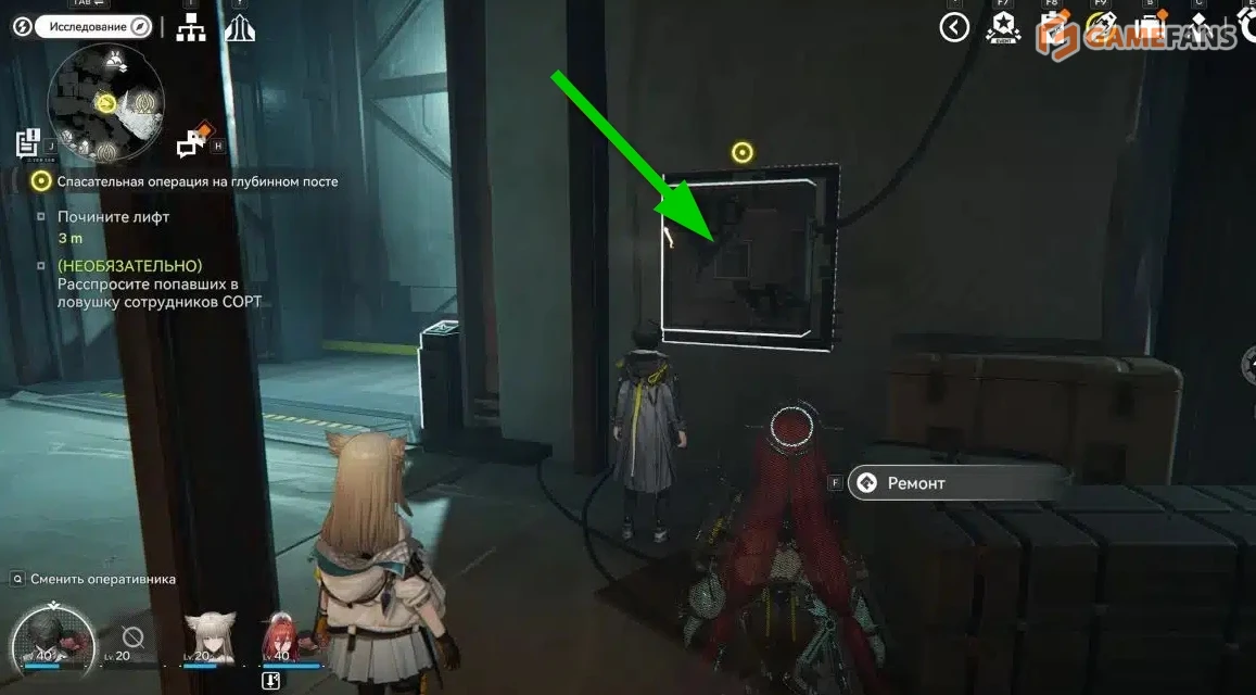 За завалом вы обнаружите застрявших сотрудников СОРТ. Они сообщат, что при падении анкера был поврежден дополнительный лифт, из-за чего выбраться самостоятельно они не смогли. При желании можно расспросить выживших, чтобы получить больше деталей о случившемся.