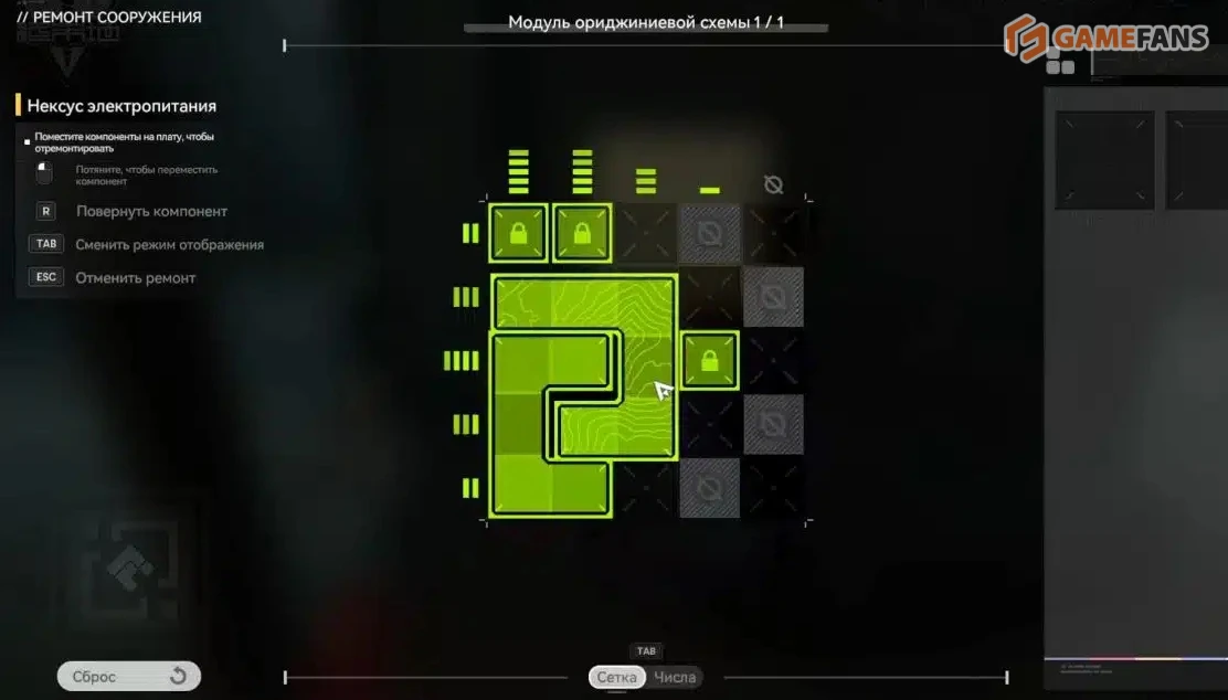 Модуль в форме буквы "П" установите в левый нижний угол нексуса, развернув его длинной стороной к краю.