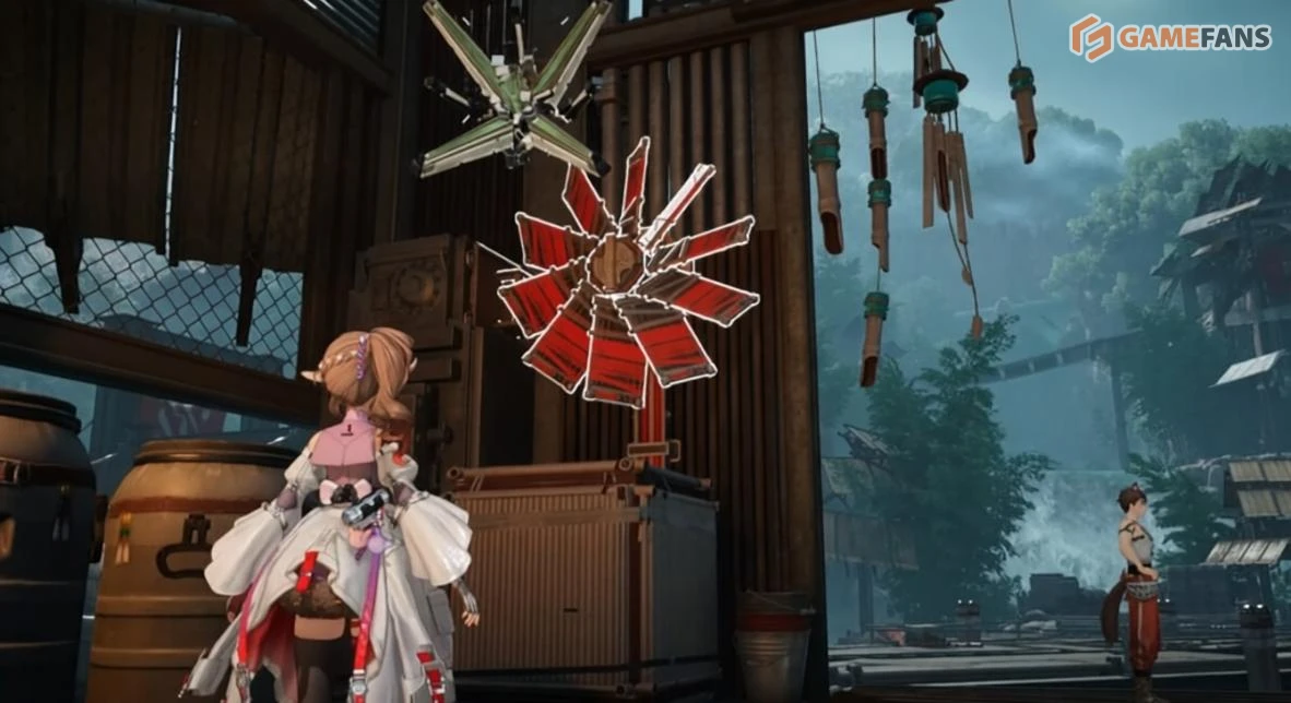 Прицельтесь в лопасти механизма и выстрелите, чтобы активировать его. После этого мост повернется и откроет проход дальше.