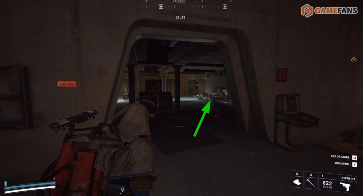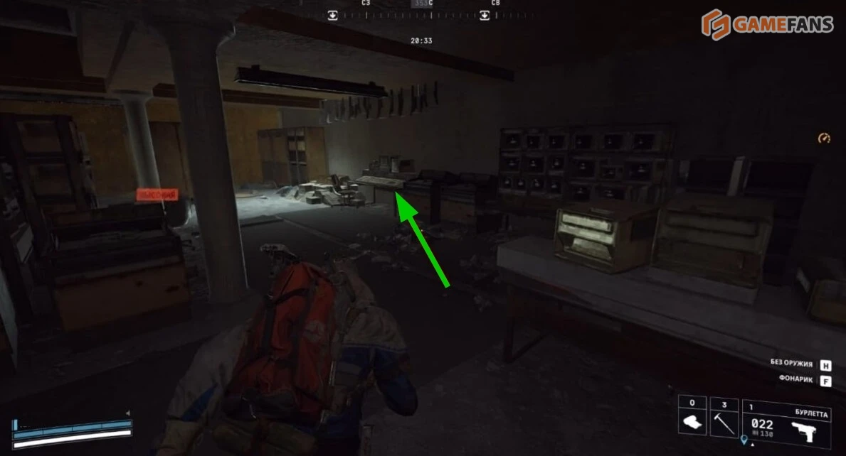 Оказавшись внутри, пройдите в ближайшее помещение и осмотрите правую сторону комнаты. Там расположен компьютер, с которым нужно взаимодействовать, чтобы запустить центр обеспечения безопасности.