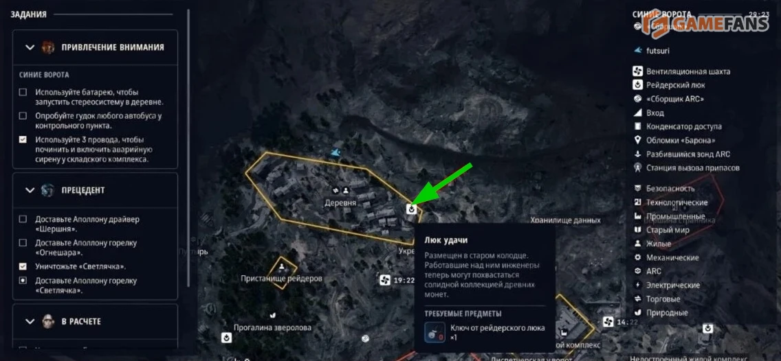 Следующая цель — Деревня, расположенная на северо-западе карты. В восточной части локации найдите так называемый люк удачи. Рядом, на одной из скамеек напротив дома, стоит бумбокс.