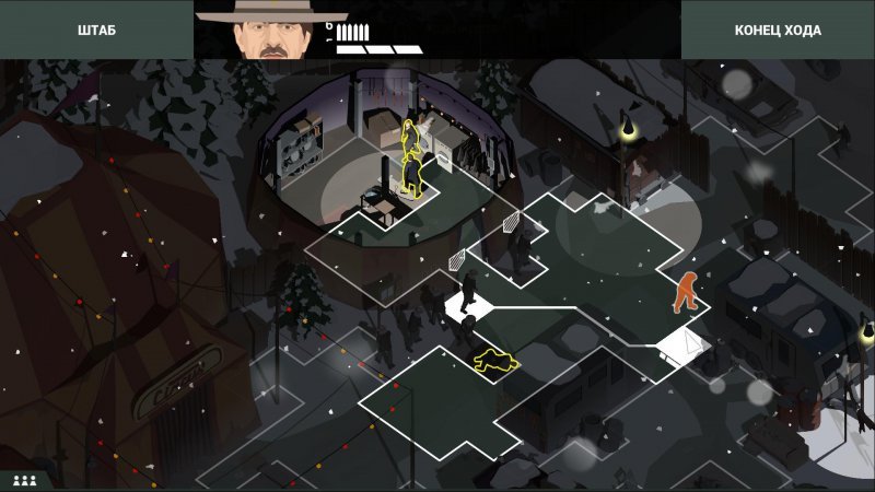 После убийства лидера «Галстуков», взаимодействуйте с генератором и проткните все четыре бочки. Вам необходимо переправить людей к месту эвакуации, которое находится в правом верхнем углу – на это дается пять ходов. Учитывайте, что оставшиеся в живых противники будут вам всячески мешать, так что лучше избавиться ото всех злодеев.