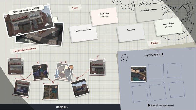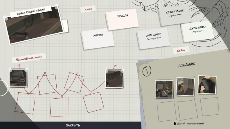 Чуть больше сложностей может возникнуть с расследованием, связанным со школьником. К слову, именно он и является преступником, но это вам лишь потребуется выяснить. Отправляйте копов в соответствующем направлении следствия (версия – школьник преступник). Расставьте карточки в следующем порядке: