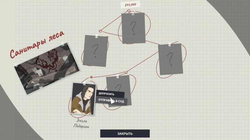 Во время выполнения одного из предыдущих заданий вы поймаете Эмиля Педерсена, который окажется одним из членов группировки «Санитары леса». Вам нужно согласиться на предложение сделать его информатором, после чего начинается допрос. Лучше всего в суд членов банды не отправлять, так как это бесполезно.