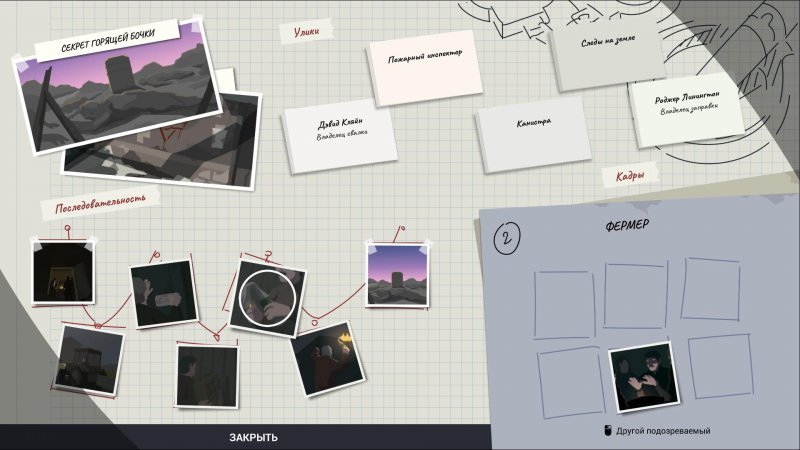 Дальше следует дело «Секрет горящей бочки», в котором вина лежит на фермере. Улики составляйте вот так: