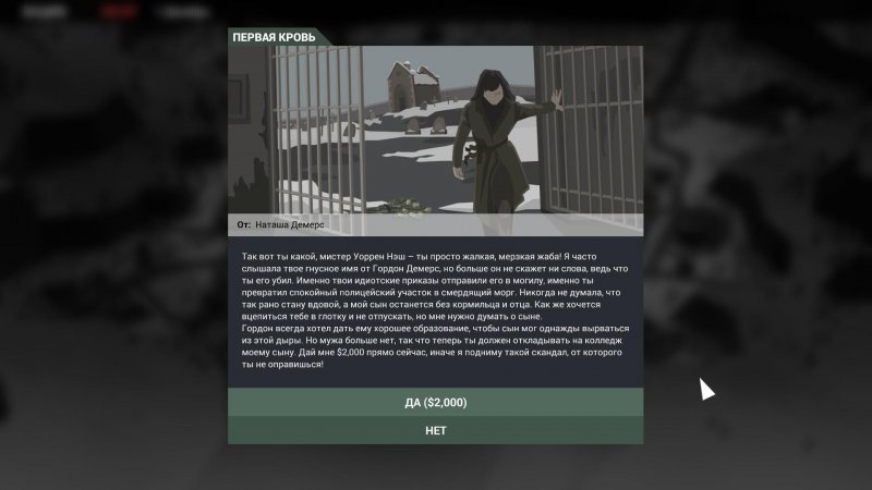 Если вы согласитесь продать зимнюю резину с полицейских машин, то станете причиной ДТП с участием копа. Вечером отправляйте работников на склад Джека, а после занимайтесь спасением души героя. Тут достаточно сложно выполнить задание, и мы даже не знаем, реально ли спасти душу Джейка. Но никто вам не запрещает пытаться это сделать, хоть и приходится «работать» в весьма непривычной обстановке.