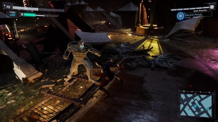 После окончания второй кат-сцены Паркер обездвижет своего противника. Когда заметите, что Шокер начал регенерация, устраните отдельный элемент его щита (появится соответствующий значок над его головой). Повторяем это действие несколько раз, пока босс не будет повержен.